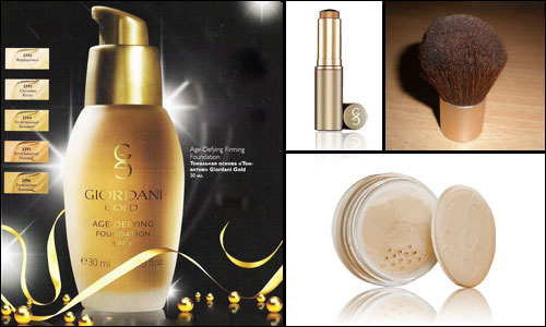 Saran produk : age defying foundation, golden touch giordani, mineral loose powder, loose powder brush